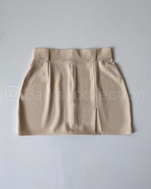 دامن چاكدار کرم با جای کمربند